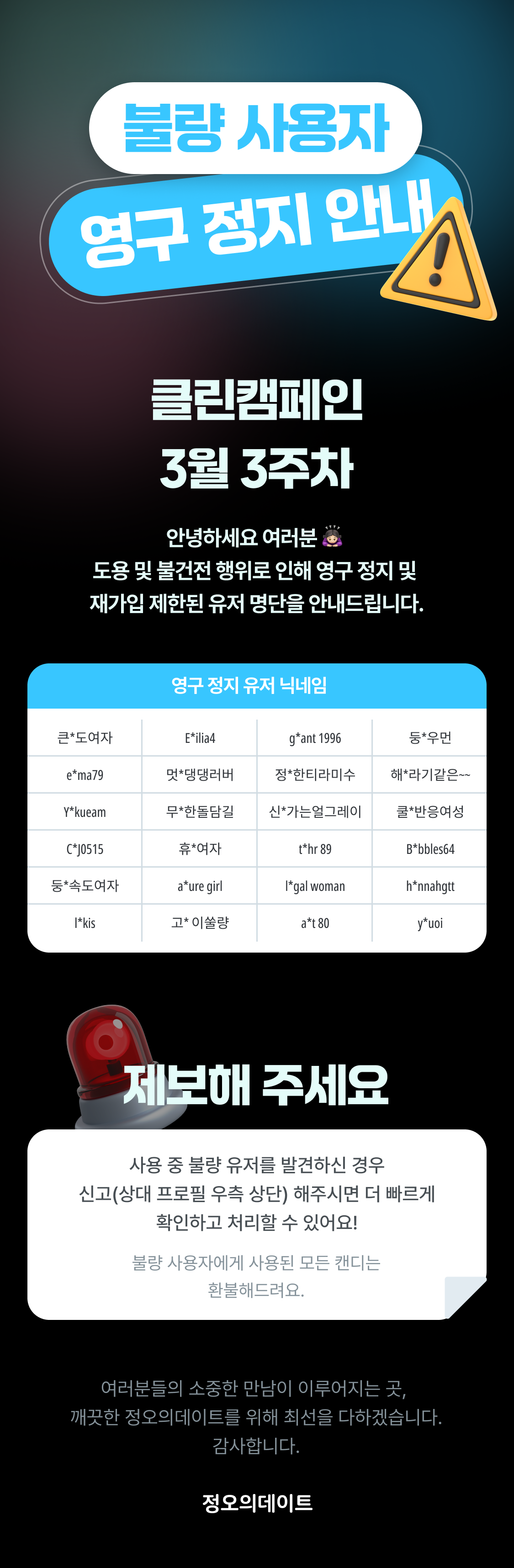 3월 3주 차 불량 사용자 영구 정지 안내